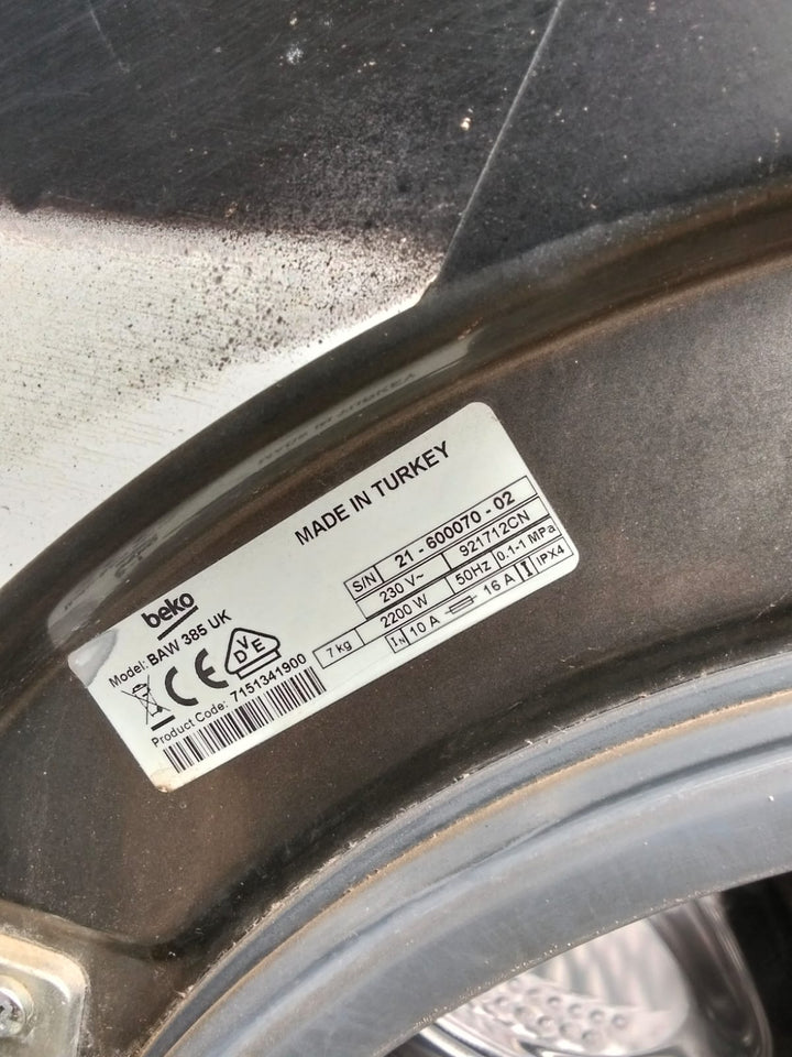The Beko BAW385UK 7kg Front Load Washing Machine (model BAW385UK) offers an efficient and user-friendly solution for your laundry needs. With a 7kg capacity, a fast 1200 rpm spin speed, and a range of smart programs, it's designed to deliver thorough cleaning with energy efficiency. This pre-loved unit comes conveniently packaged and has slight scratches from prior ownership.