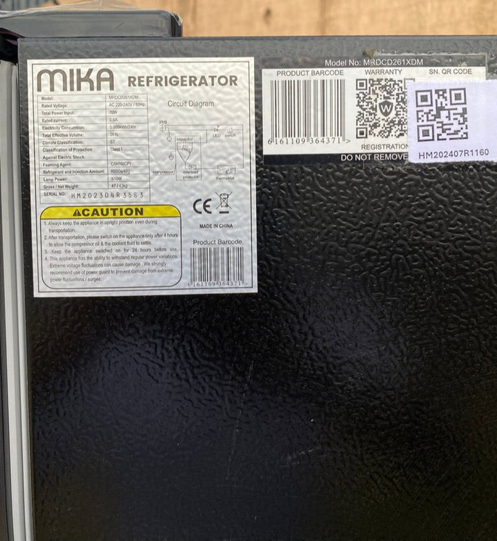 The MIKA Top Mount Freezer 2 Door Defrost Fridge MRDCD261XDM is a spacious and efficient fridge with a stylish dark silver finish. Product Description Brand: MIKA Model: MRDCD261XDM(MRDCD261XSF) Type: Top Mount...