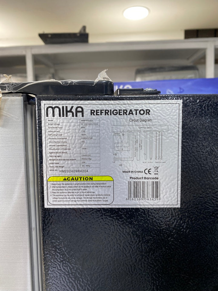 Brand: MIKA Model: MRNF202LSDV Type: Top Mount Freezer, No Frost Fridge Capacity: 202L Color: Silver