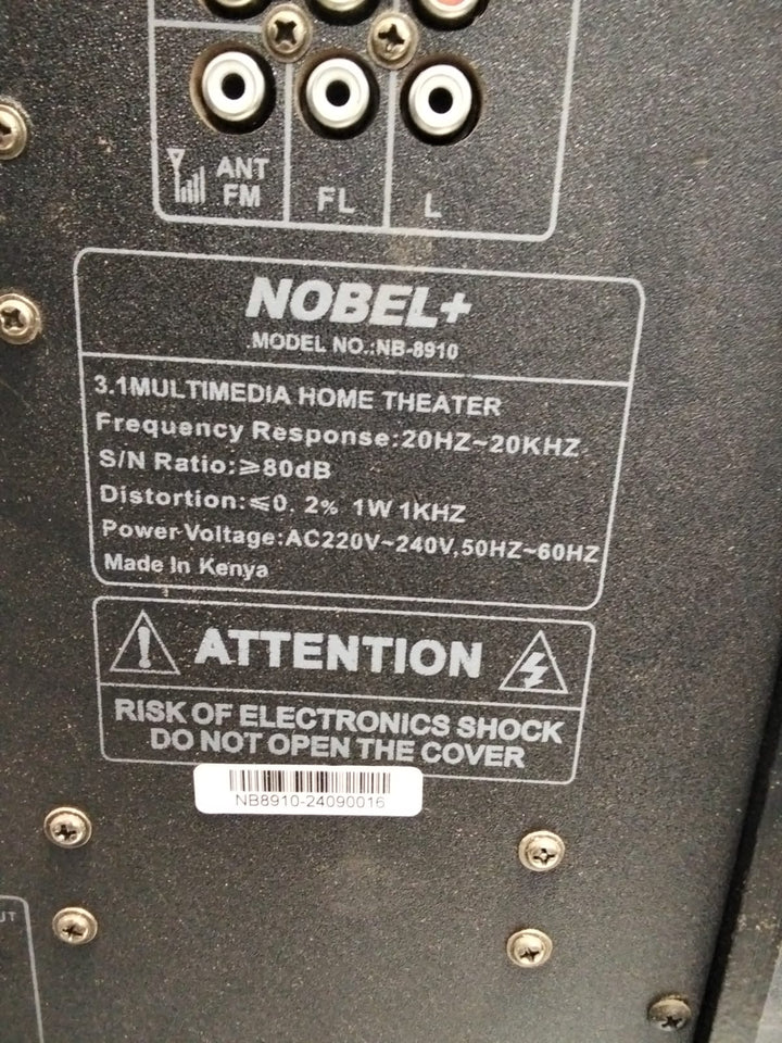 Premium Home Theatre Sound System - Pre-Loved<br><br>Experience cinema-quality audio at home with this pre-loved Nobel NB8910 3.1 Channel Sub-Woofer System, quality-checked and ready to deliver powerful, room-filling sound.<br><br>Complete Audio Solution<br>• 3.1 Channel Configuration with dedicated subwoofer for deep bass<br>• High Power Output for large rooms and outdoor events<br>• Crystal Clear Sound across all frequency ranges<br><br>Versatile Connectivity<br>• Bluetooth for wireless music streaming<br>• USB Port to play music directly from flash drives<br>• FM Radio with preset stations<br>• AUX Input for connecting multiple devices<br><br>Pre-Loved Value<br>Professionally inspected and tested. All functions working perfectly. Enjoy premium home theatre sound at an unbeatable price. Some signs of previous use may be visible.<br><br>Shop at GreenBay Market - Quality pre-loved home entertainment in Kenya.