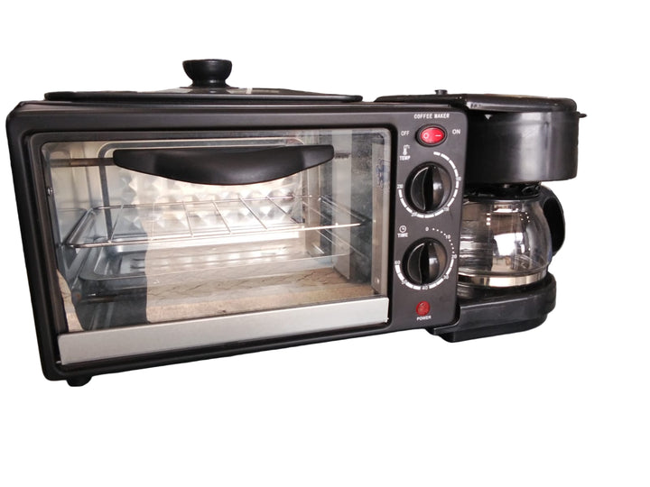 - Functions: Coffee Maker + Toaster + Grill/Frying Pan