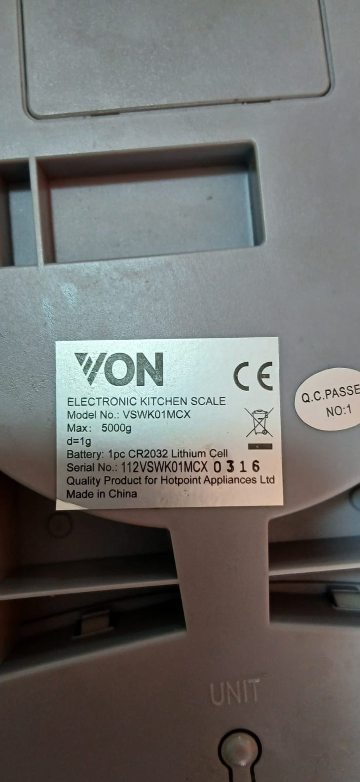 Von VSWK01MCX Kitchen Weighing Scale Pre-Loved